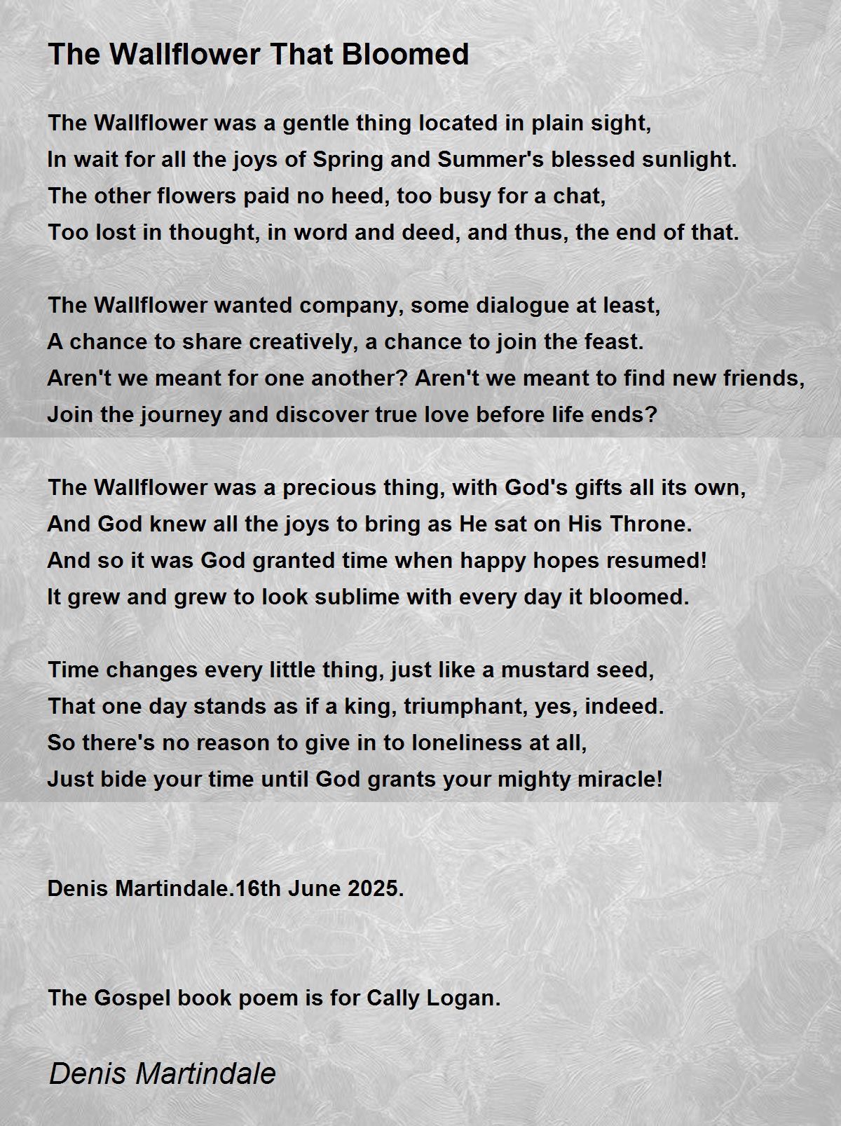 The Wallflower was a precious thing, with God's gifts all its own,