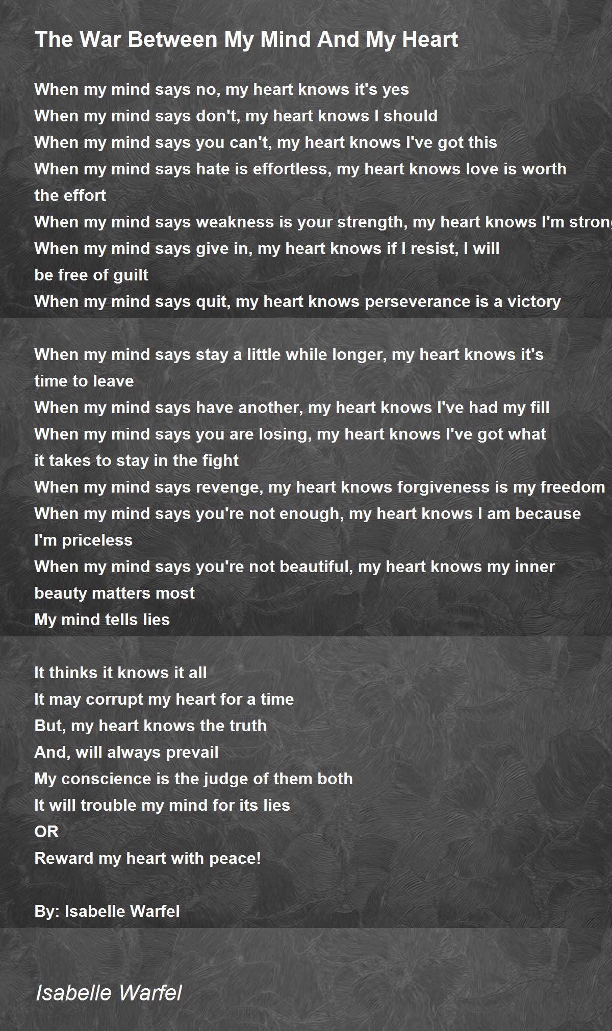 When my mind says you're not beautiful, my heart knows my inner beauty matters most