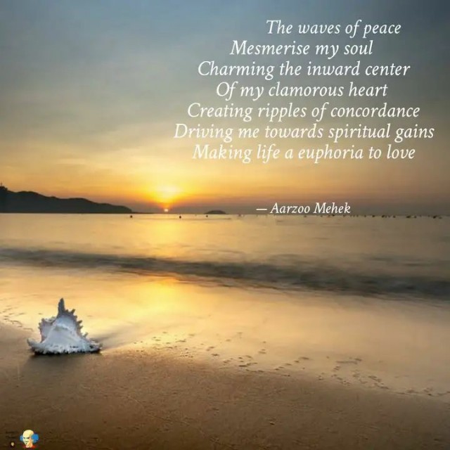 A highly expressive poem on ripples of peace! I would cite the most fascinating lines here, 'Charming the inward center/Creating ripples of concordance/Of my clamorous heart/Driving me towards spiritual gains....an endearing poem that traverse from Nadir to Zenith of spiritual realm....Top score!