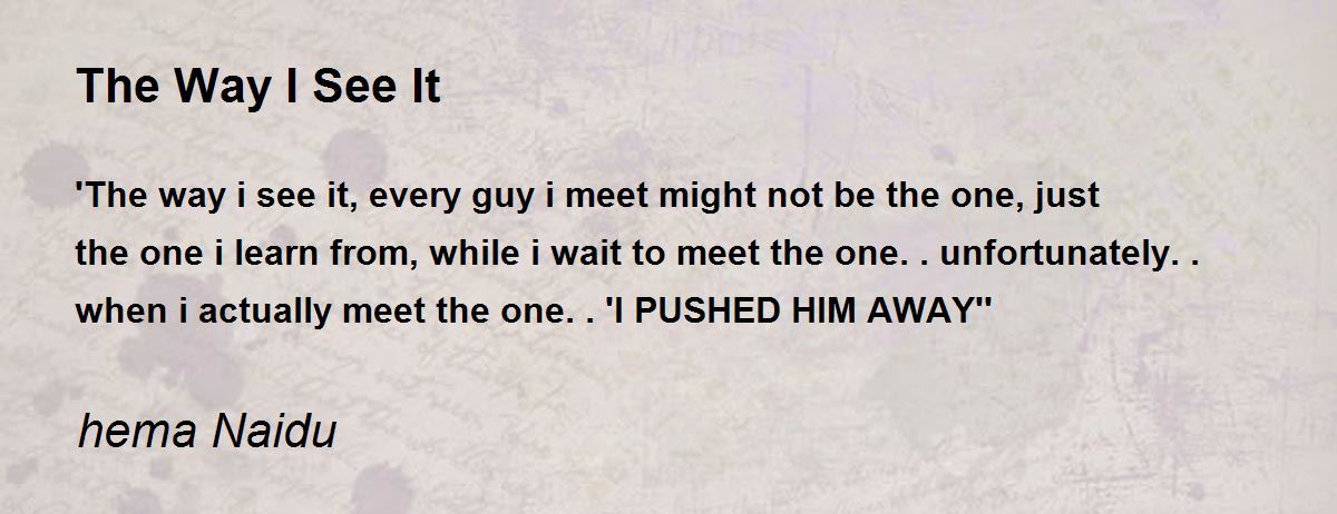 'The way i see it, every guy i meet might not be the one, just the one i learn from, while i wait to meet the one.. unfortunately.. when i actually meet the one.. 'I PUSHED HIM AWAY''