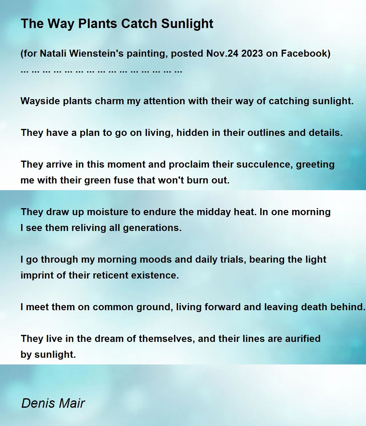They live in the dream of themselves, and their lines are aurified by sunlight.