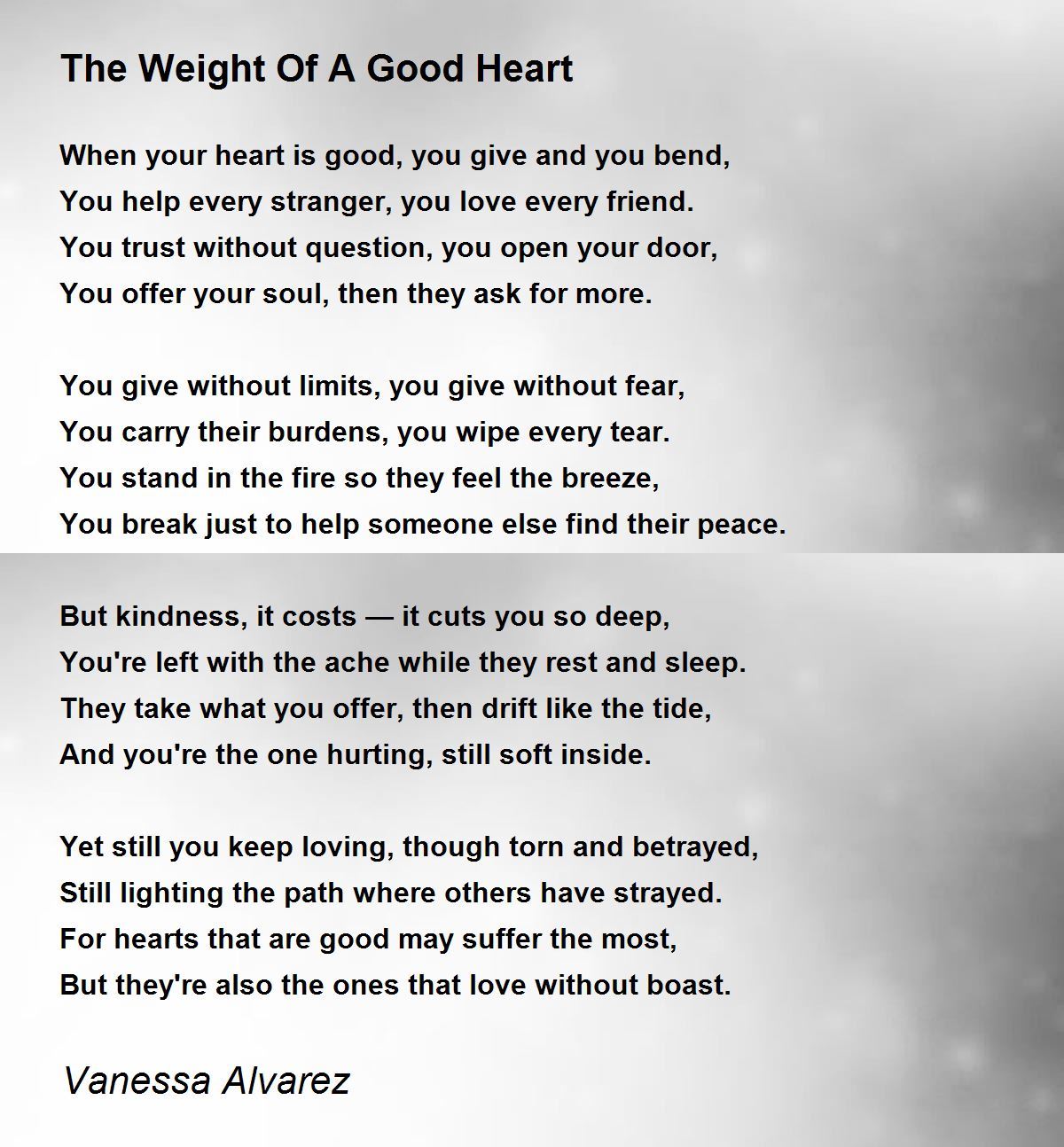 Yet still you keep loving, though torn and betrayed,