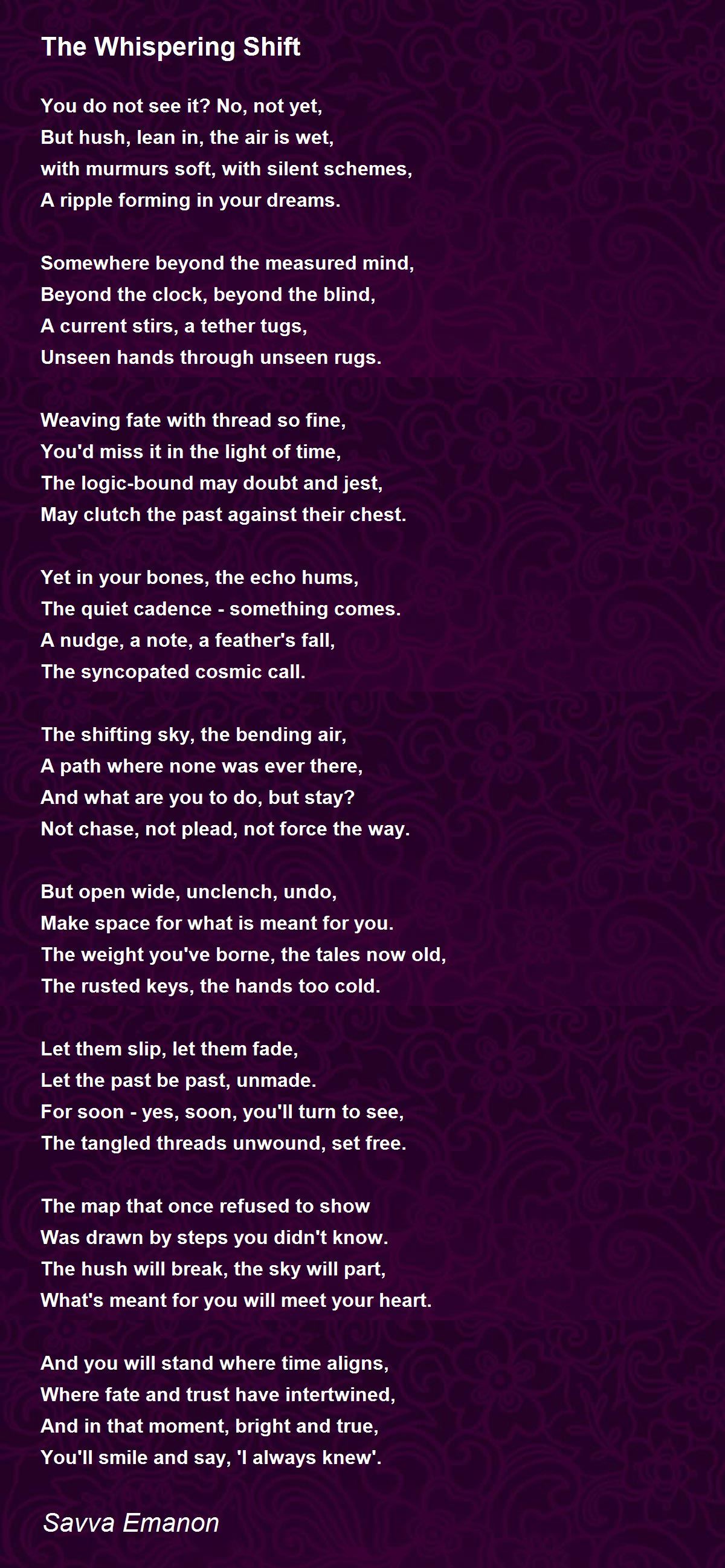 But hush, lean in, the air is wet,