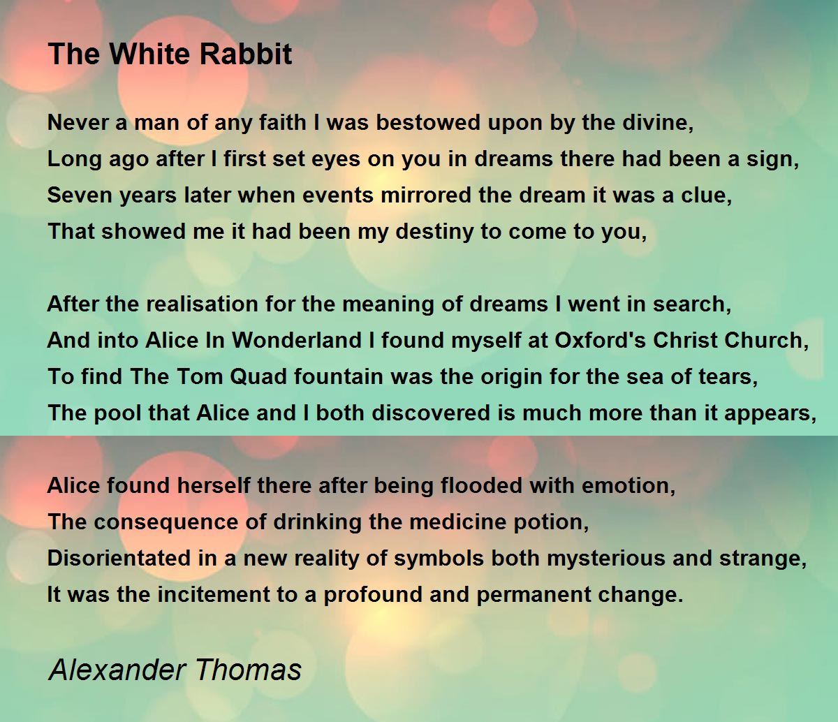 Alice found herself there after being flooded with emotion,