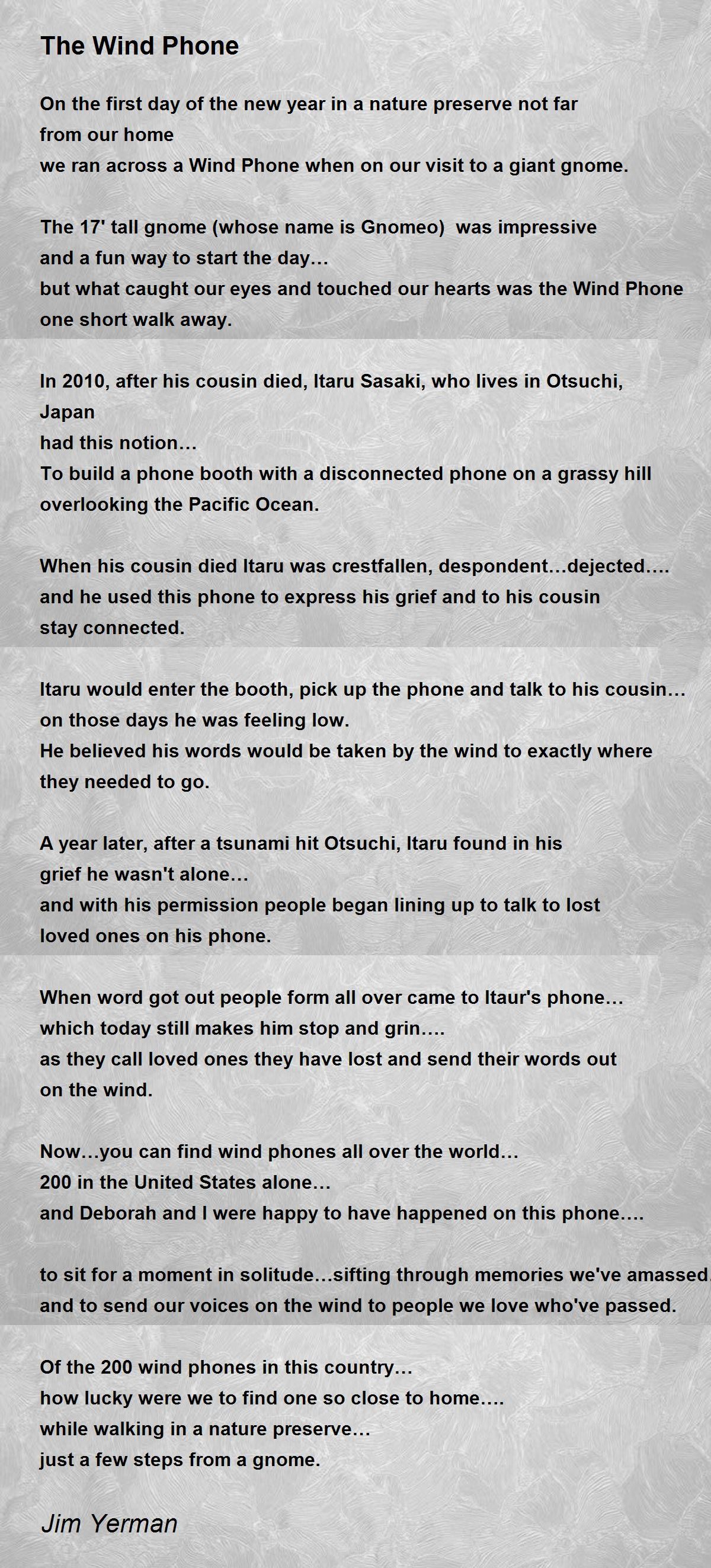 we ran across a Wind Phone when on our visit to a giant gnome.