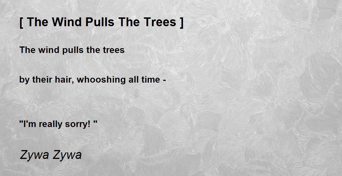 The wind pulls the trees by their hair, whooshing all time - "I'm really sorry! "