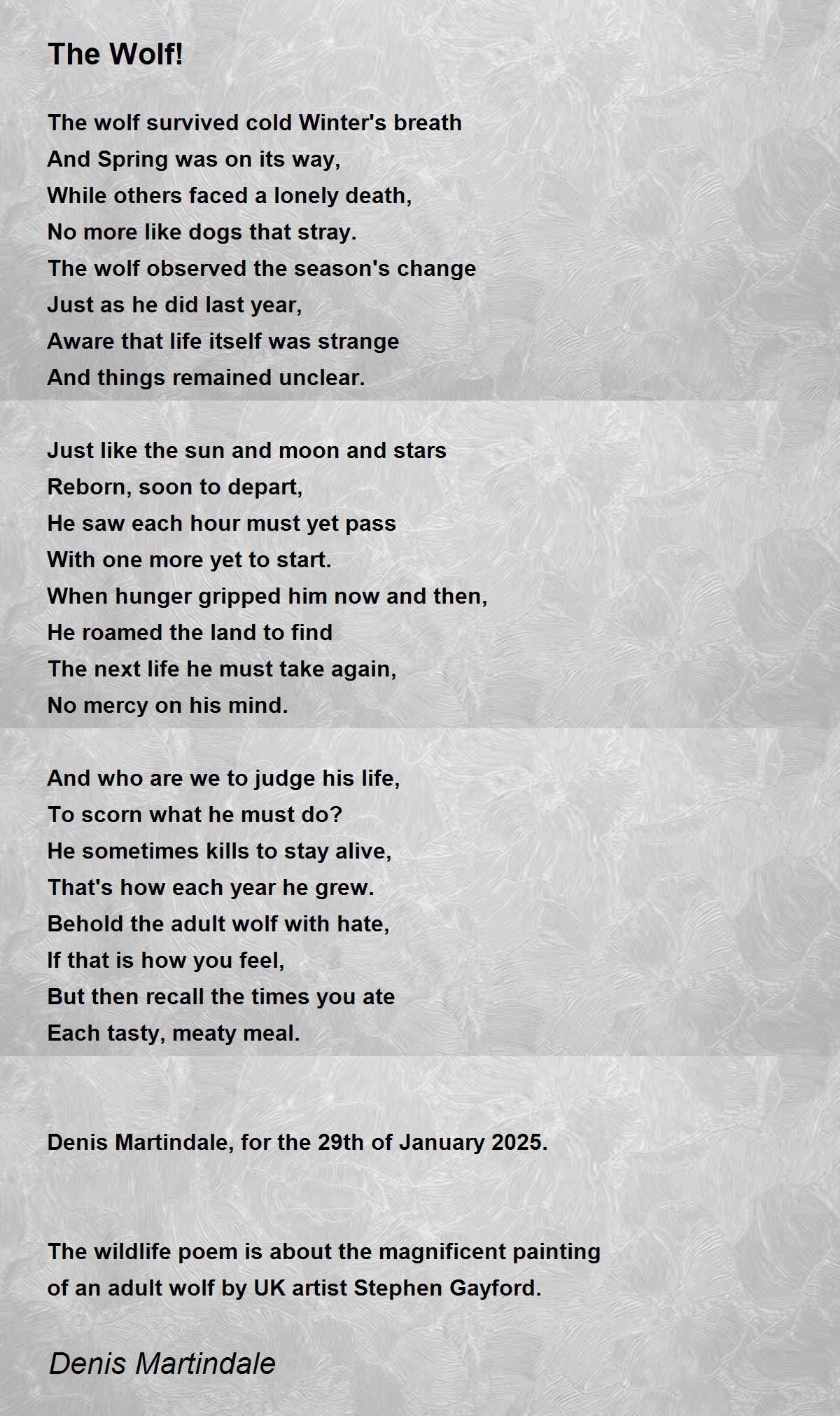 The wildlife poem is about the magnificent painting