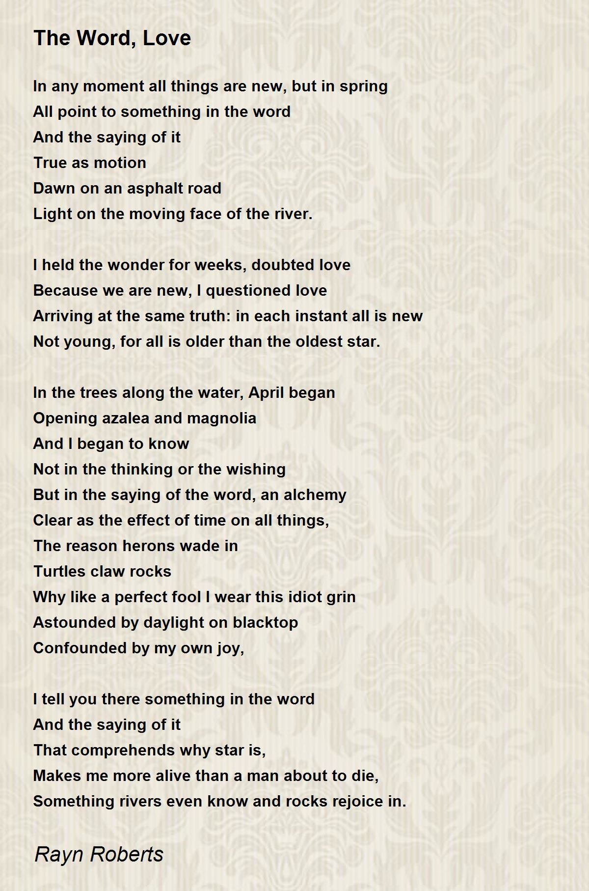 I held the wonder for weeks, doubted love