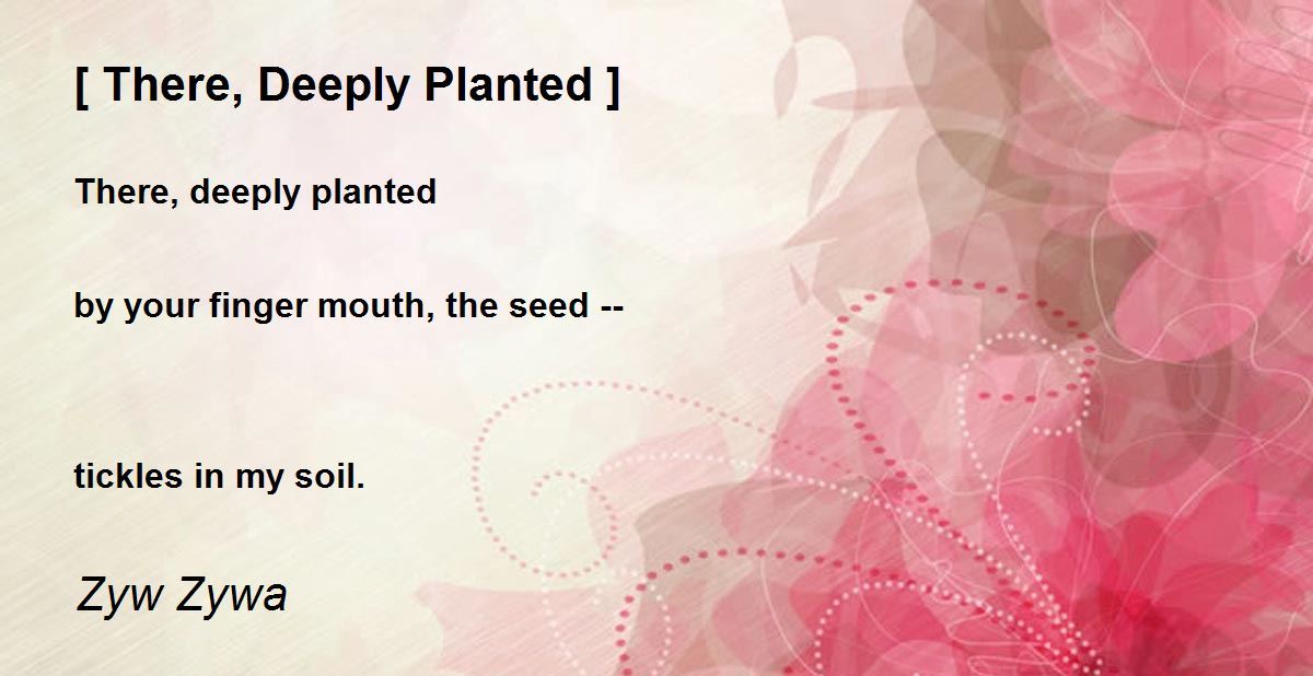 There, deeply planted by your finger mouth, the seed -- tickles in my soil.
