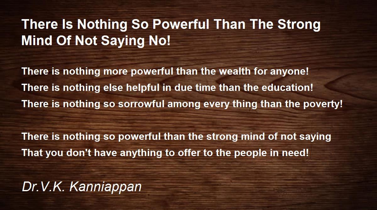 There is nothing so powerful than the strong mind of not saying That you don't have anything to offer to the people in need! ... Yes indeed, so true. Well said dear poet.