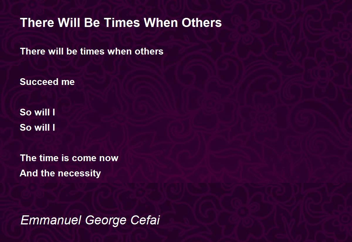 There will be times when others Succeed me So will I So will I The time is come now And the necessity