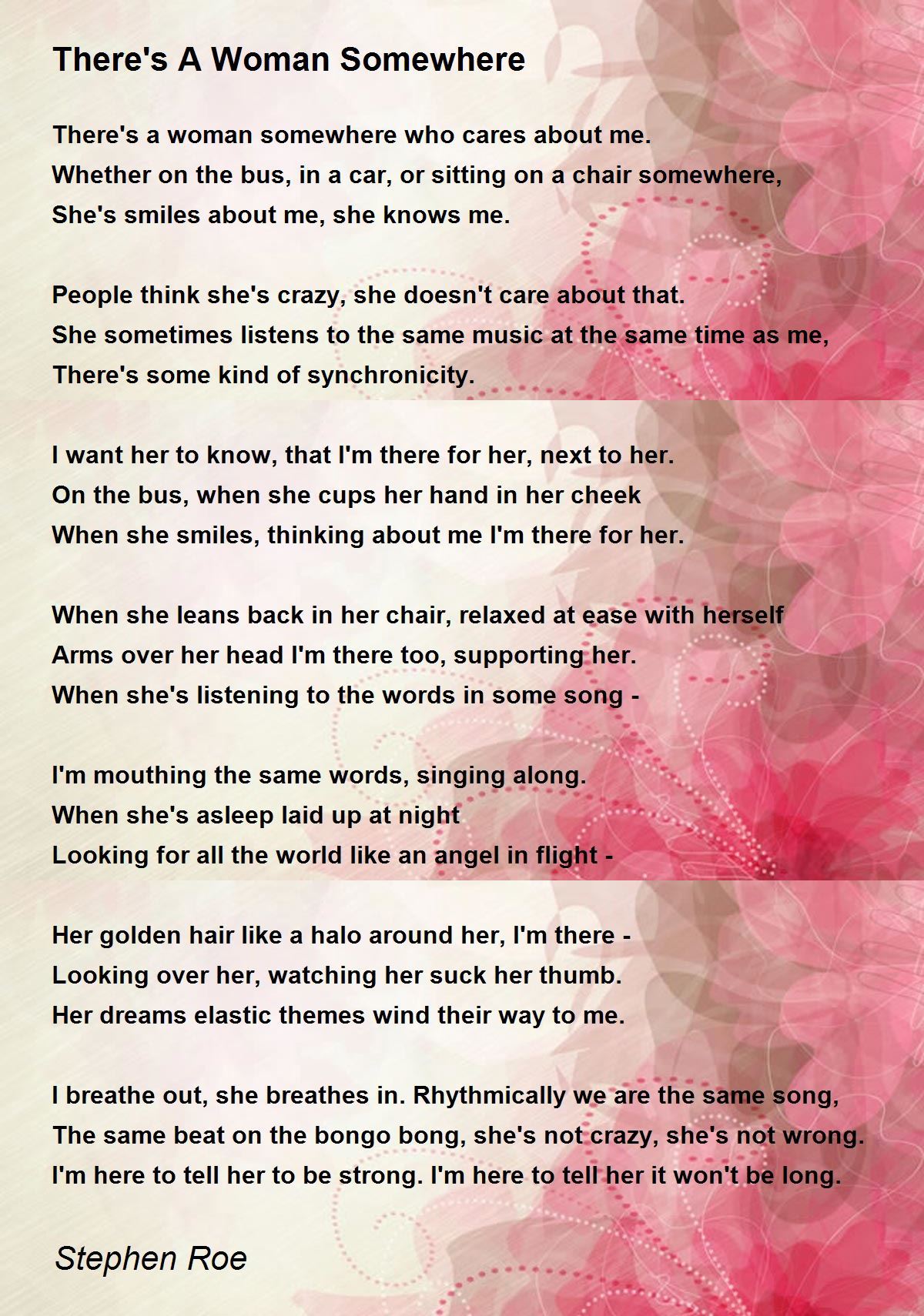There's a woman somewhere who cares about me.