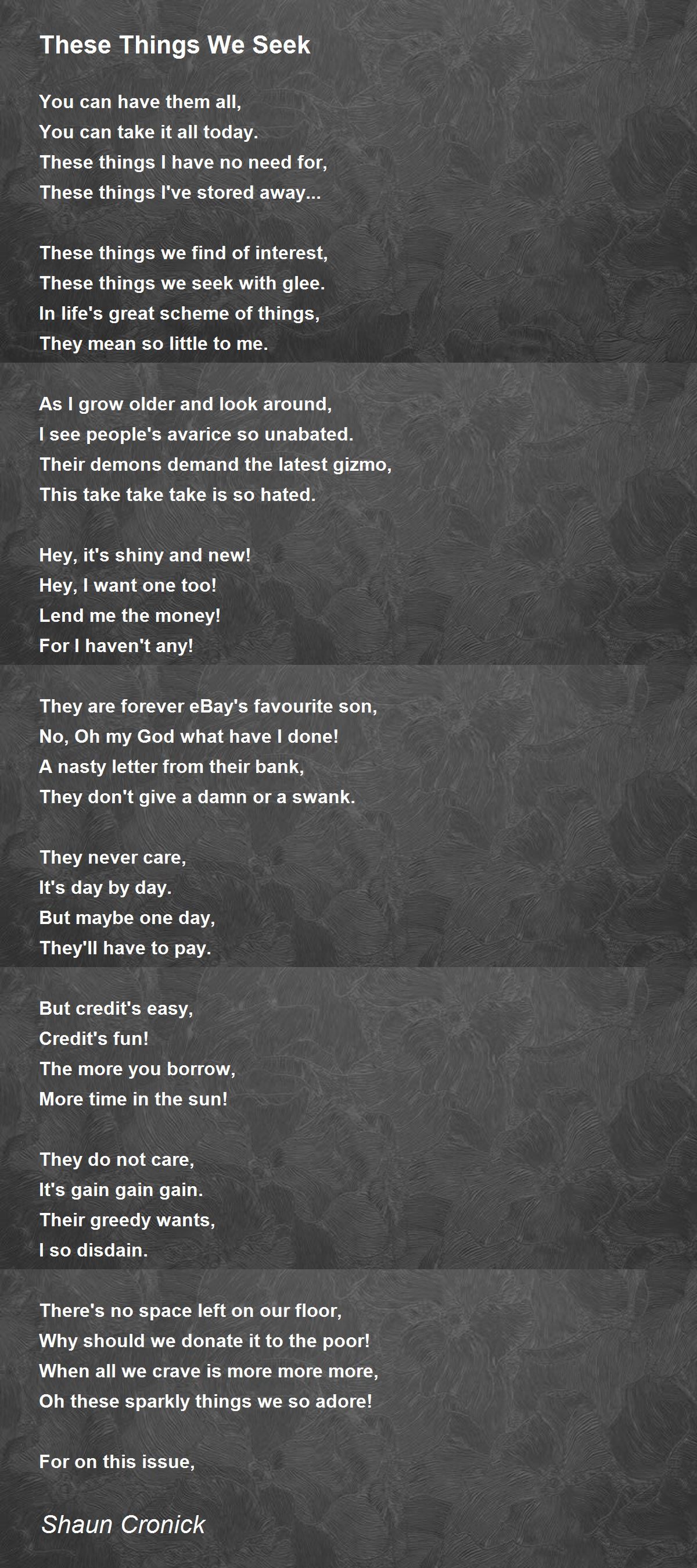 very nice to hear from you again Dear Shaun the great poet, your superb end surprising us all, , , that is the unique Technic use by a professional poet such as you, and the theme is very great too, thank you for sharing with us,10/10 I have added to my favorite poem Regards