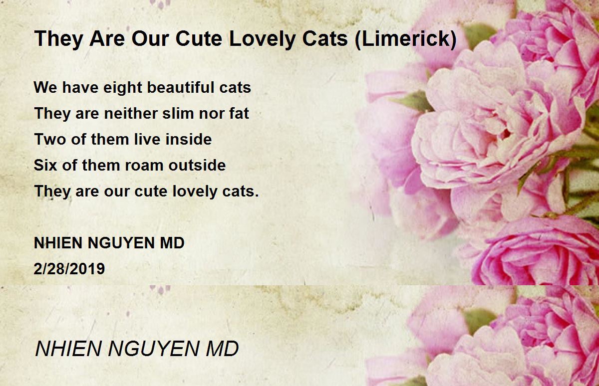 Thank you for this poem, from one cat lover to another! I would have liked to see a picture of your cats posted with the poem.