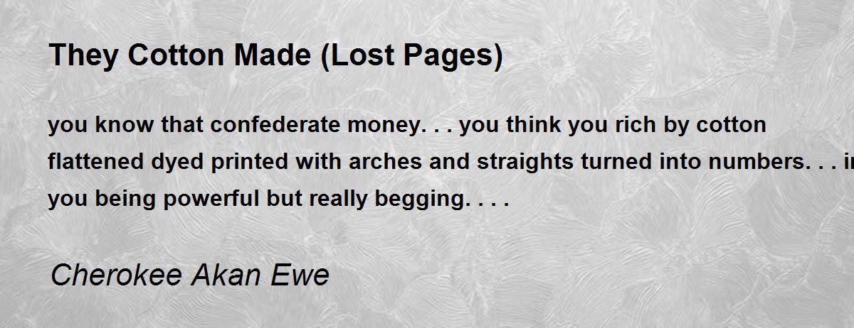 you know that confederate money...you think you rich by cotton flattened dyed printed with arches and straights turned into numbers...imagine you being powerful but really begging....