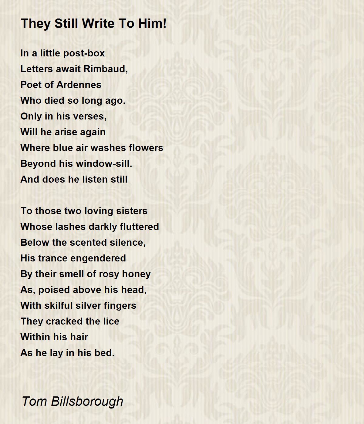 To be honest, though I know Rimbaud's poems well, I hadn't heard this story until last week. It was in the Daily Mail Travel Section! advertising the forests of the Ardennes in the very North of France. Some bits of my poem are based on one of Rimbaud's poems which describes with affection his big sisters delousing his hair! It sounds like he had two lovely guardian Angels there!