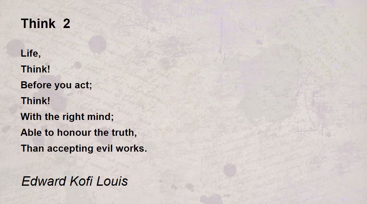 Life, Think! Before you act; Think! With the right mind; Able to honour the truth, Than accepting evil works.