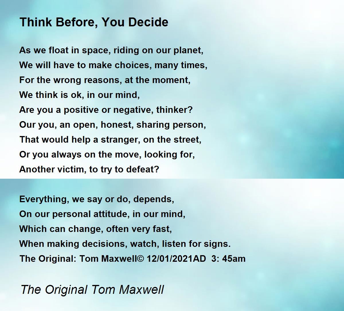 The Original: Tom Maxwell© 12/01/2021AD 3: 45am