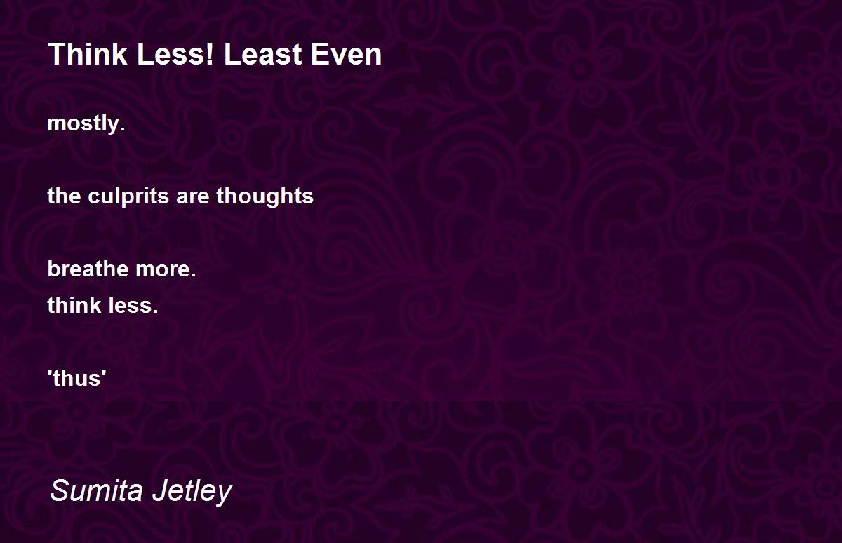 mostly. the culprits are thoughts breathe more. think less. 'thus'