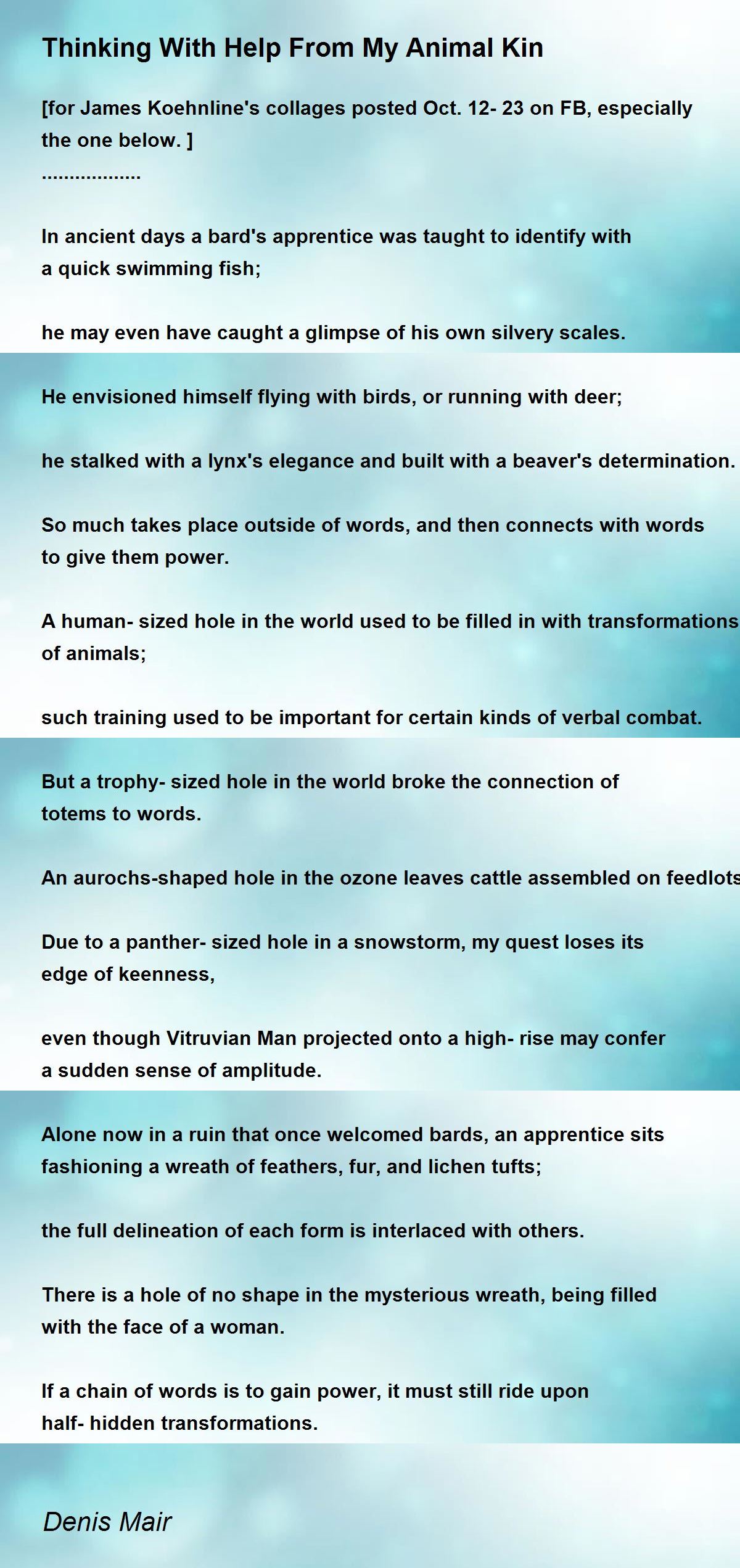 In ancient days a bard's apprentice was taught to identify with a quick swimming fish;