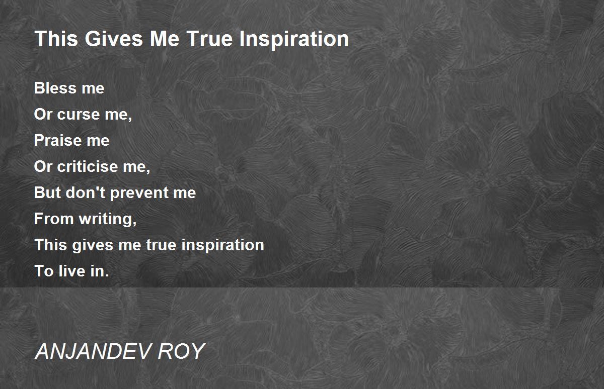 Bless meOr curse me, Praise meOr criticise me, But don't prevent meFrom writing, This gives me true inspirationTo live in.