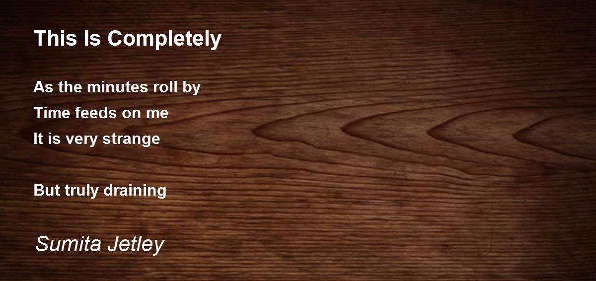 As the minutes roll by Time feeds on me It is very strange But truly draining