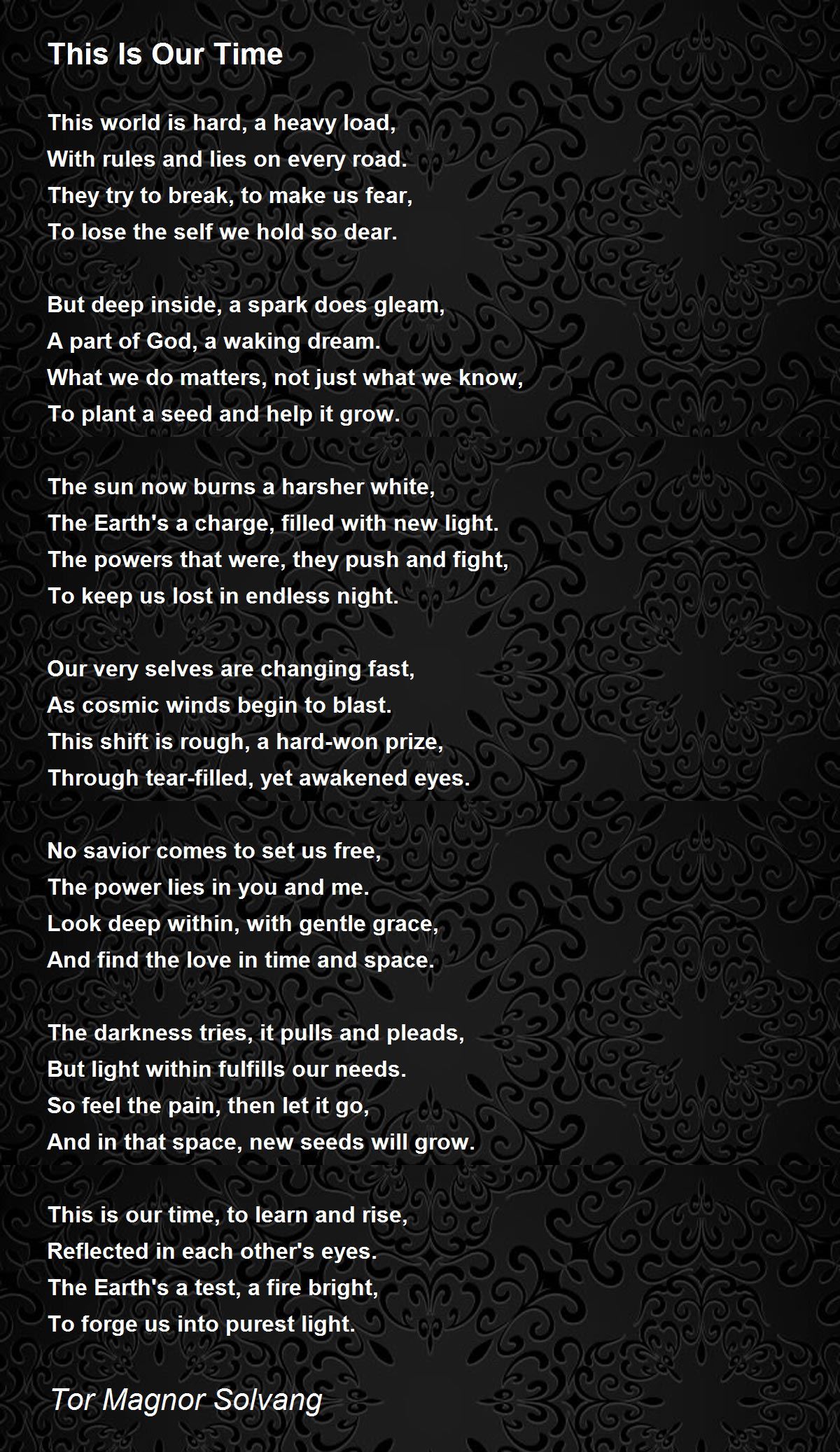 This Is Our Time Poem by Tor Magnor Solvang