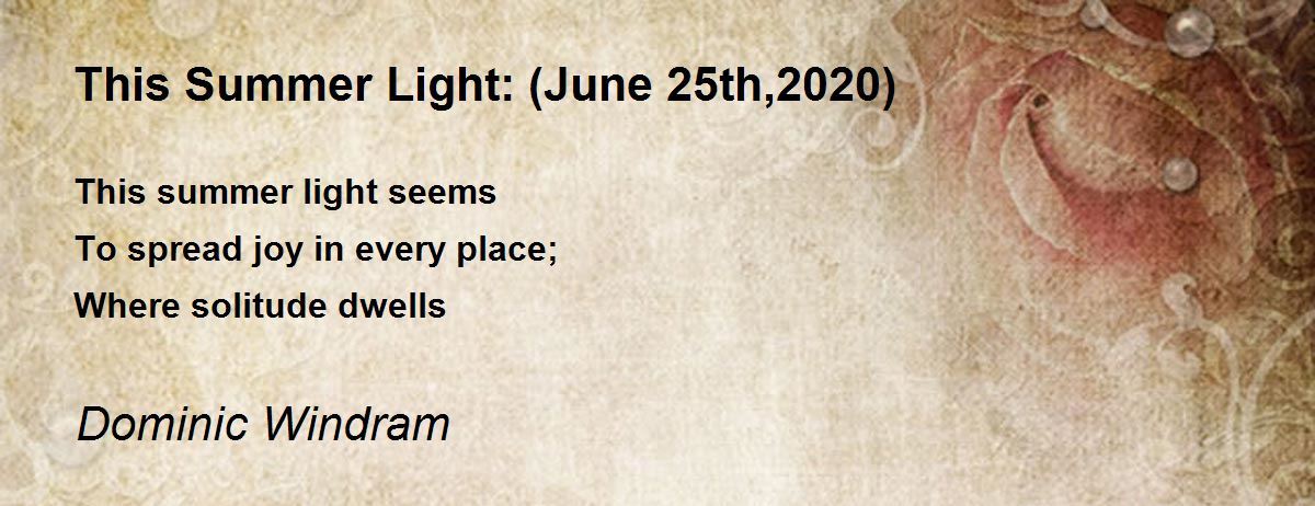 This summer light seems To spread joy in every place; Where solitude dwells