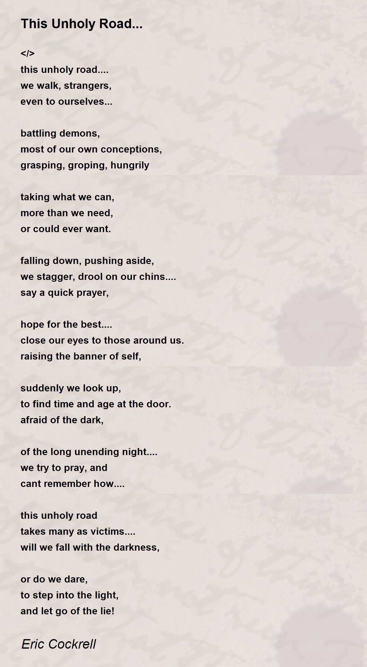 this unholy road....