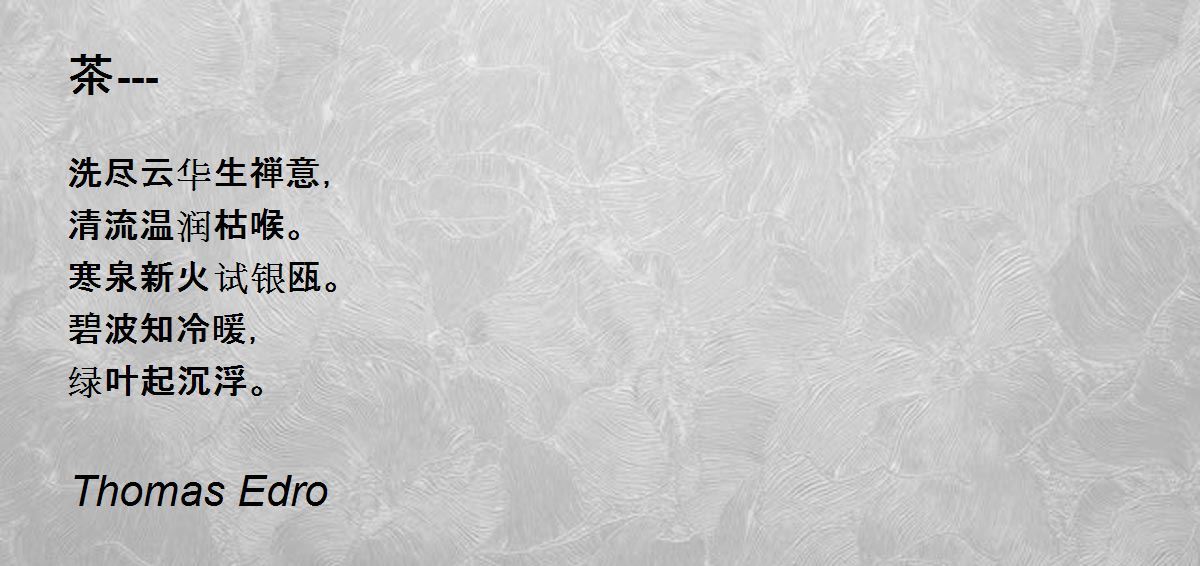 洗尽云华生禅意, 清流温润枯喉。 寒泉新火试银瓯。 碧波知冷暖, 绿叶起沉浮。