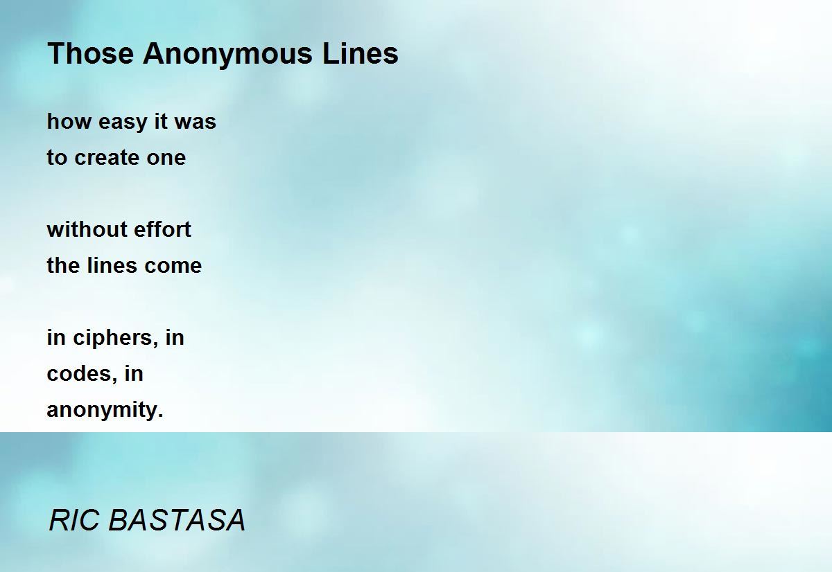 how easy it was to create one without effort the lines come in ciphers, in codes, in anonymity.