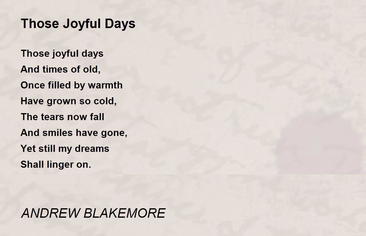 Verily, the joyful days of the early times, are never forgotten. I invite you to read my poems