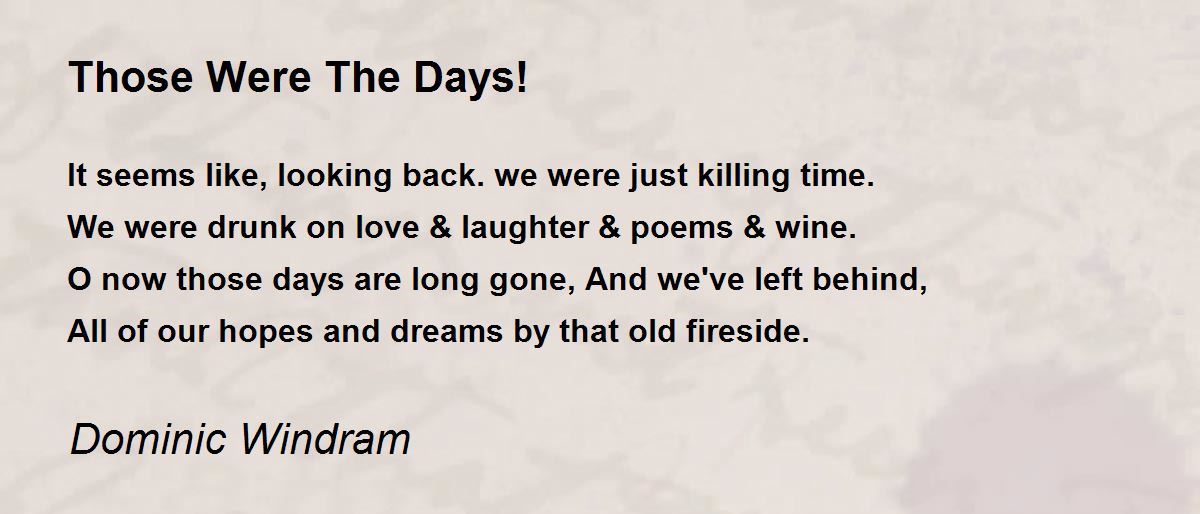O now those days are long gone, And we've left behind,