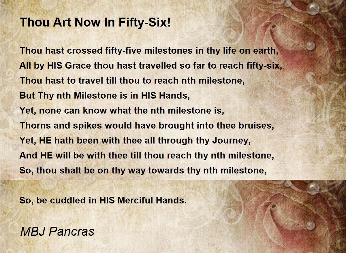 All by HIS Grace thou hast travelled so far to reach fifty-six,