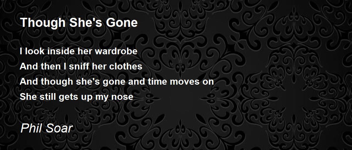 I look inside her wardrobe And then I sniff her clothes And though she's gone and time moves on She still gets up my nose