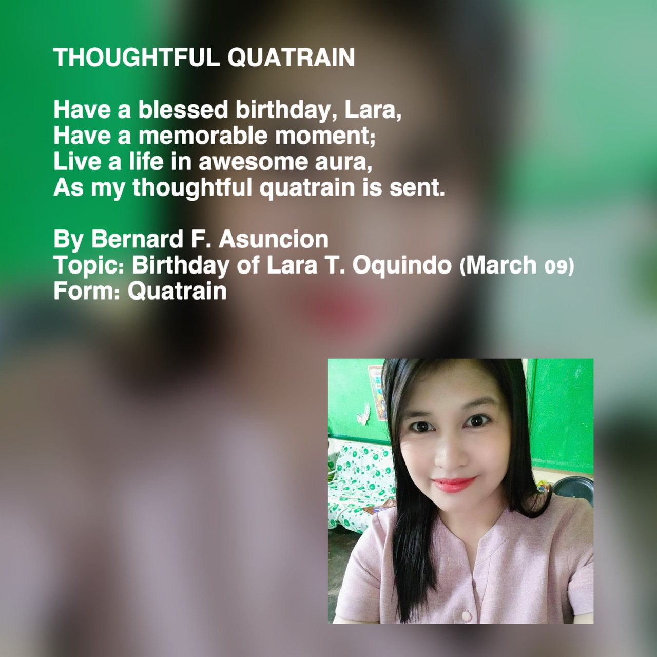 Topic: Birthday of Lara T. Oquindo (March 09)