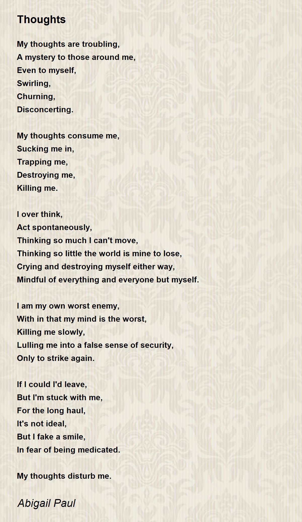 My thoughts consume me,