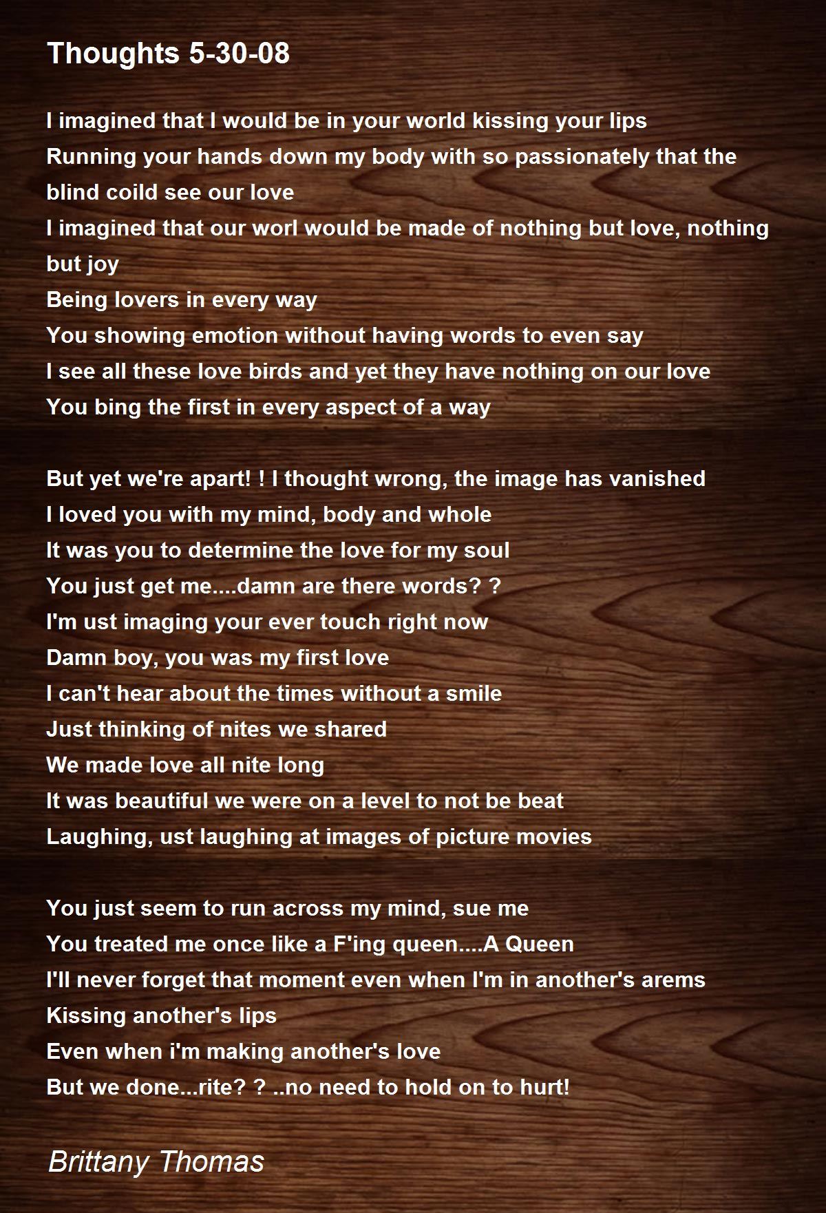 I imagined that our worl would be made of nothing but love, nothing but joy