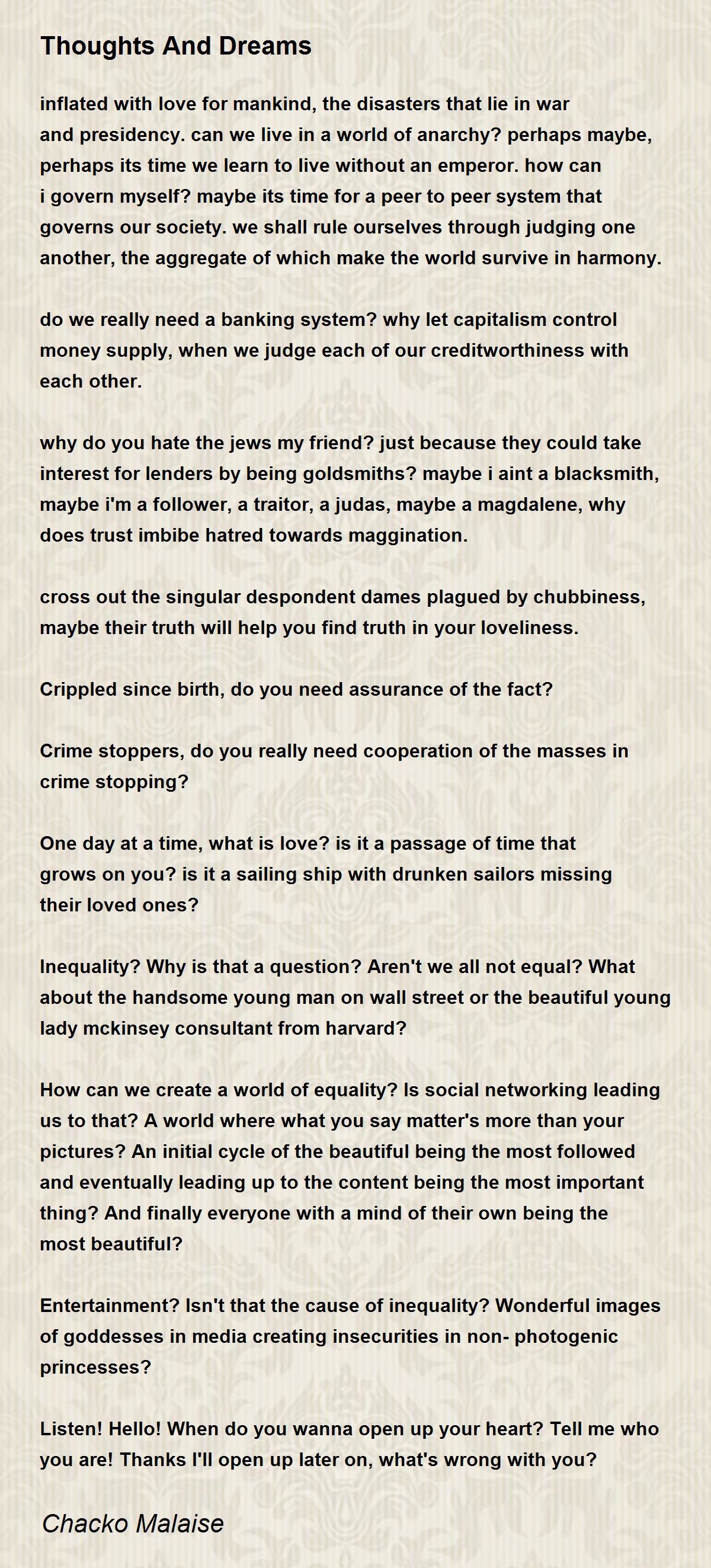 inflated with love for mankind, the disasters that lie in war and presidency. can we live in a world of anarchy? perhaps maybe, perhaps its time we learn to live without an emperor. how can i govern myself? maybe its time for a peer to peer system that governs our society. we shall rule ourselves through judging one another, the aggregate of which make the world survive in harmony.