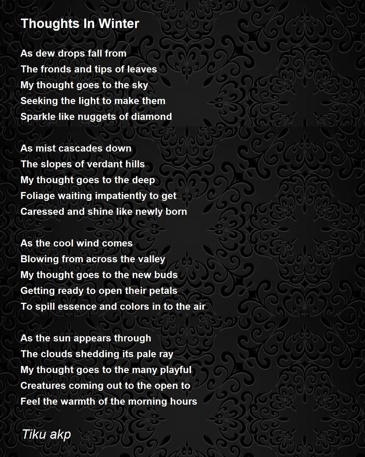 very nice AKP MANY NEW POEMS I have just posted all await your depth of thinking do read hopefully