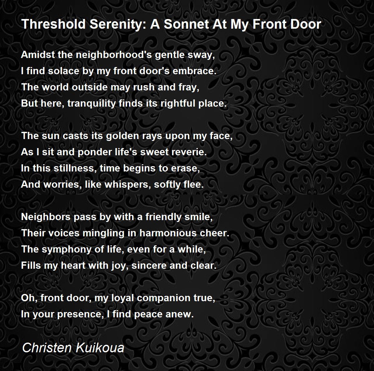 I find solace by my front door's embrace.