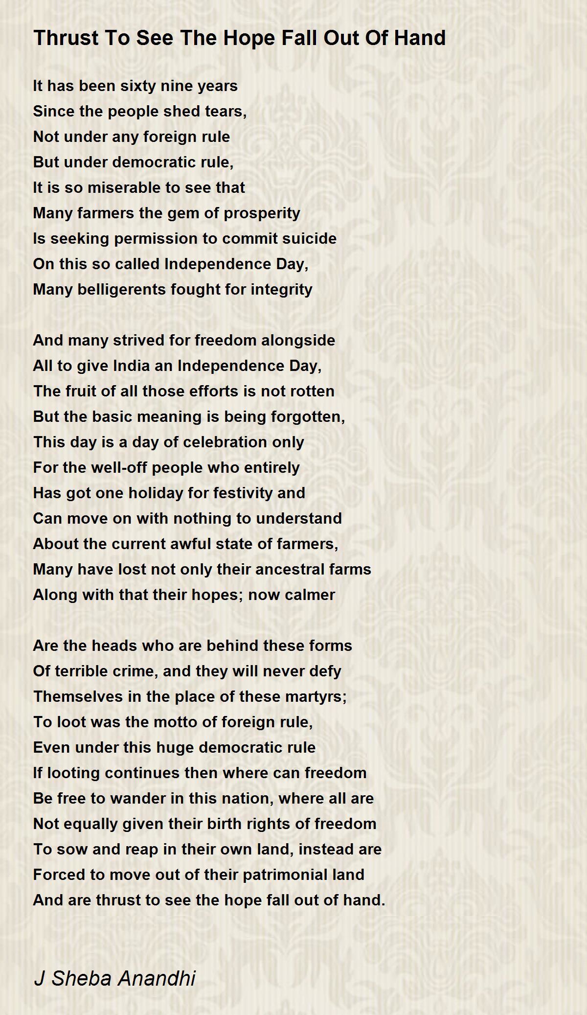 And are thrust to see the hope fall out of hand.
