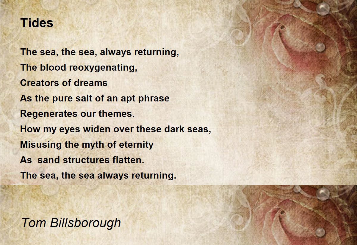 I was trying to imitate the rhythm of the French line by Paul Valery.. La Mer, La Mer toujours retournee (forgive lack of accent!) . I'm very susceptible to great lyrical poets such as Valery, Tom Eliot and Plath and their lines constantly hum through my head. The musicality of verse is very important to me.
