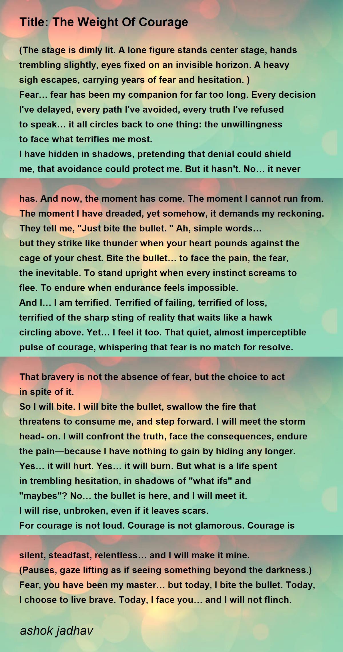 Yes… it will hurt. Yes… it will burn. But what is a life spent in trembling hesitation, in shadows of "what ifs" and "maybes"? No… the bullet is here, and I will meet it. I will rise, unbroken, even if it leaves scars.