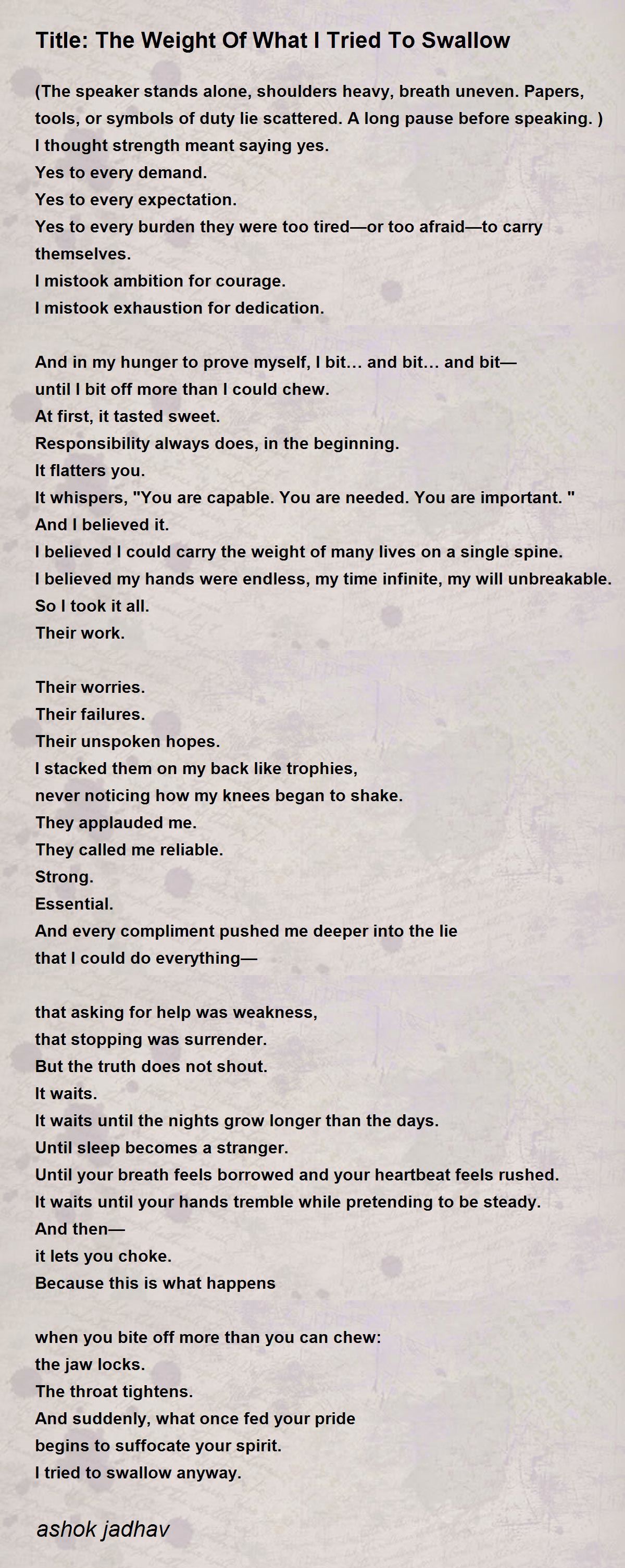 Yes to every burden they were too tired—or too afraid—to carry themselves.