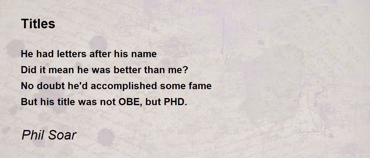 Humor about Ph.D. as Doctor title is added before name is wonderfully presented in this poem. An interesting sharing is done here.10