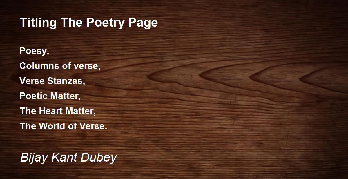 Poesy, Columns of verse, Verse Stanzas, Poetic Matter, The Heart Matter, The World of Verse.