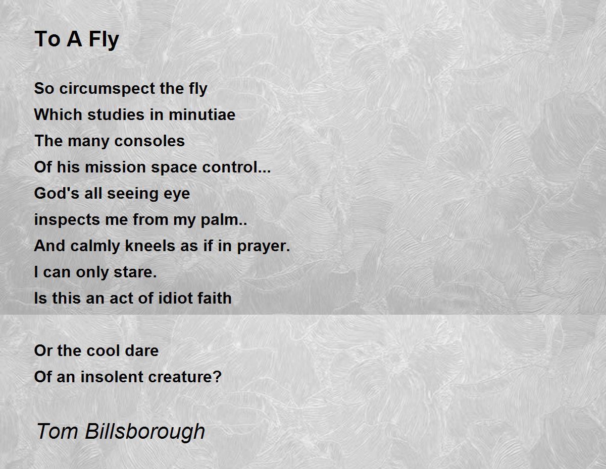 i'm imagining this in my mind's eye. is that right to say mind's eye here? you refer to a flies multi-faceted eyes? and i've seen them kneeling and crossing their front legs. i thought they were bowing down to BRI! ! ! ! ! who knew they were spies from God! ! ! ? or impudent pests! ? to MyPoemList. :) bri