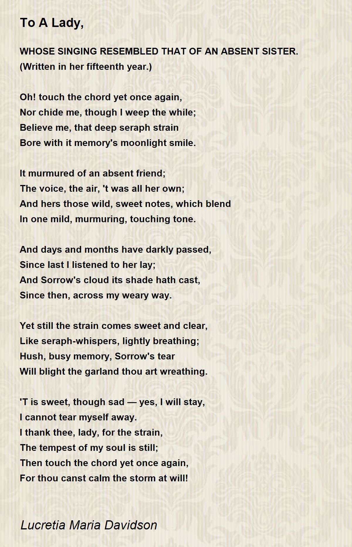 WHOSE SINGING RESEMBLED THAT OF AN ABSENT SISTER.