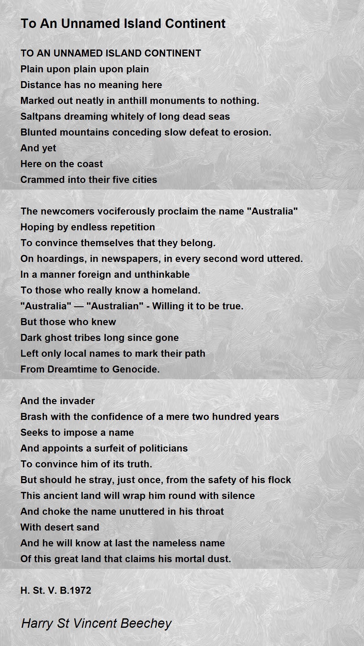 TO AN UNNAMED ISLAND CONTINENT